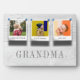 Crea un regalo único y elegante para la abuela con esta placa de collage de fotos de tres instagramas. Impresión rústica de efecto madera con "GRANDMA" o apodo preferido de tu abuela con sofisticadas letras grises y los nombres de los nietos puestos en la foto.