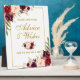 Acuarela Floral Borgoña Marsala Boda de oro consejos y deseos Mesa Plaque