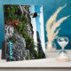 Un cuadro digital de un águila calva encaramado en un tronco de madera de deriva inundado en la costa pedregosa de Alaska; las montañas se encuentran a lo lejos. También aparece el texto "Alaska".