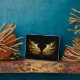 Placa Expositora Alas del Ángel de Oro sobre fondo negro