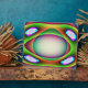 Esta impresionante placa. presenta un patrón multicolor de colores psicodélicos brillantes alrededor de una estructura central de forma de huevo. Se parece a una fantasía de una nave espacial alienígena lista para secuestrar una terrina.
