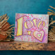La palabra "amor" está pintada en un suave amarillo dorado contra fondo rosa, morado y melocotón. La pintura acuarela tiene un contraste textural y espuma de una capa clara de purpurina. Personalice esta pintura artística con su propio texto o imágenes usando la opción "Personalizar". ¡Es un gran regalo de apoyo para pacientes o cuidadores!