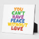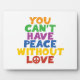 AMOR Y PAZ. Este diseño muy sencillo, original y colorido dice: NO PUEDES TENER PAZ SIN AMOR. Una señal de paz se encuentra dentro de la ‘O’ de la palabra Amor. Abogar por la paz mundial, la paz en la Tierra, la paz con nuestros enemigos, la paz en nuestros corazones. Gran tema para celebrar el Día Internacional de la Paz, establecido por una resolución de las Naciones Unidas en 1981 y a veces llamado Día Mundial de la Paz. Este artículo es un regalo único para las mujeres y los hombres, los niños, los bebés, los niños y los chicas. Compra otros artículos en la tienda verde donde puedes comprar en línea - desde pegatinas, botones, imanes, tazas, gorras, posters, ornamentos y estuches de teléfonos celulares a polos, sudaderas, capuchas, otras prendas de vestir y mucho más!