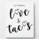 El signo boda de amor y tacos -el diseño se basa en las escrituras y en las escrituras en blanco y negro. En funda tiene necesidad adicional de estar en contacto conmigo: szdesigns2021@gmail.com