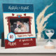 Idea de regalo de placa de exhibición de fotos para un aniversario de bodas de rubí. Agrega nombres, una foto y la fecha establecida. 40 años felices juntos. Azul y crema con corazones de amor y formas de remolino.