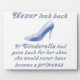 Nunca mires atrás. Si Cenicienta hubiera vuelto por su zapato, nunca se hubiera convertido en princesa. Vive todos los días al máximo, y nunca mires atrás; no importa lo malo que pueda parecer algo, no hay manera de saber qué bien puede resultar de eso. Solo vives una vez, ¡no pierdas el tiempo en arrepentimientos! Un bonito diseño con una escritura de cristal, y por supuesto, la icónica zapatilla de cristal de la Cenicienta.