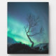 Fotografía astronómica de la Luz del Norte (Aurora borealis) y un árbol en el norte de Noruega, Escandinavia.