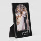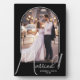 Un recuerdo especial que presenta su foto de boda en un diseño de arco elegante con el texto "Casados" en texto chic junto con sus nombres y fecha de boda en un fondo negro. Hermoso regalo para su familia y un recuerdo fabuloso para mostrar en su propia casa. ¡El color de FONDO se puede cambiar! MÁS COLORES en nuestra colección.