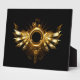 Areas mecánicas brillantes, con engranajes y banner redondo de latón. Steampunk