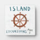 Un bonito cartel náutico para excursiones por la isla con la rueda del capitán.
