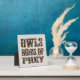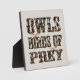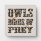 En la imagen aparecen las palabras aves lechuzas de presa hechas de varias imágenes de búho con lechuzas volando sobre las letras