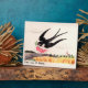 Un pájaro, un golondrino o un Martín, volando en una escena rústica y rural llevando un timbre con flores de Corazón Sangrante. Por el artista checo Vaclav Fiala. Esta imagen fue adquirida de un telegrama checo de 1947. Añade tu propio texto. Václav Fiala (1896-1980) - pintor, artista gráfico, ilustrador y grabador checo. Pupil del renombrado pintor checo Max Švabinský de la Academia de Bellas Artes en Praga, Fiala experimentó con los estilos de arte popular de la época. Desde los años 30, Fiala favorecía el realismo. El tema principal de sus obras fue el paisaje cultural. En su visión artística siguió los estudios etnográficos clásicos de Josef Manes. Obras de Václav Fiala retratan la vida y la cultura de la gente común, no afectados por los efectos negativos de la civilización. Sus paisajes son retratados por las viviendas rurales, figuras de la gente del campo y grupos de ganado.