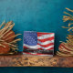 Placa Expositora Bandera estadounidense, ondeando en el viento