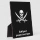 Personaliza fácilmente este divertido gráfico de cráneo pirata Jolly Roger moderno de niños y cruza la bandera de espadas en un fondo negro. Puede cambiar fácilmente el color de fondo de un rango de más de 200 colores.