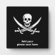 Personaliza fácilmente este divertido gráfico de cráneo pirata Jolly Roger moderno de niños y cruza la bandera de espadas en un fondo negro. Puede cambiar fácilmente el color de fondo de un rango de más de 200 colores.