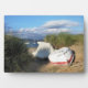 Diseño fotográfico de barcos en las dunas de arena y barcos lejanos amarrados en el puerto. Gales Reino Unido.