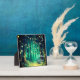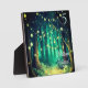 A beautiful evening wedding, engagement, or anniversary with a forest path adorned with fairy lights in the trees, creating a stunning backdrop. A gentle mist lingers in the background of the forest, with countless trees and lights hanging gracefully from their branches.