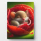 Adorable ilustracion de un diminuto ratón durmiendo pacíficamente dentro de una flor roja floreciente. Este encantador diseño aporta calidez y ternura, lo que lo hace perfecto para regalos, decoración casera o keepsakes personales. Puede personalizar cada diseño agregando su propio texto o redimensionándolo para que se ajuste a su espacio - sólo tiene que hacer clic en el botón "editar diseño" de arriba. Las obras de arte se pueden aplicar a una variedad de productos, incluyendo arte mural, tazas, tarjetas, bolsos de té, almohadas y más.