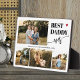 Create your own modern simple best daddy ever typography script with 4 custom photos keepsake black and white plaque for Father's Day, his birthday, or any other occasion.