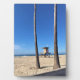 Vista del famoso spot de surf "Blackies" desde el aparcamiento en Newport Beach, California. La torre de vigilancia 22 entre dos palmeras. En 1953, William "Blackie" Blackstock abrió el bar de buceo Blackies by the Sea. Desde entonces, los lugareños han llamado a esta playa "Blackies", y es un popular sitio de surf para los principiantes y los que se alojan en largas jornadas. Foto tomada en noviembre de 2022.