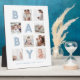 Muestre las fotos de su bebé con nuestra elegante y moderna placa blanca de color para el bebe fotográfico. El diseño presenta un diseño de ocho cuadros fotográficos para mostrar las fotos especiales de su bebé. El "Baby" se muestra en el diseño moderno de letras en bloques azules dentro de la distribución de la rejilla. Personalizado con el nombre del bebé y estados de nacimiento. Un placer especial para mostrar en tu casa, así como enviar a un familiar o a un ser querido como regalo especial.