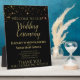 Este hermoso signo o placa de sí mismo dará la bienvenida a los invitados a su ceremonia de boda. Personalizable completo y diseñado para coordinar con nuestra Suite Boda de Esparkles Shimmering. Diseñadas como parte de nuestra suite Boda Shimmering Sparkles, cuentan con un diseño elegante y original de estrellas rosa y doradas con texto dorado sobre un fondo negro.