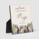 Bienvenido a sus huéspedes con estilo con nuestro Cartel de Bienvenida con Mostrador de Flor Púrpura. Añada un toque personal incluyendo su nombre y fecha de boda creando un cálido e inolvidable saludo para sus seres queridos a medida que llegan a su día especial.