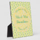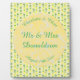 Esta impresionante placa boda presenta un patrón de frutas tropicales de piña amarilla con tops verdes y hojas de palma verde pálido en bonito. Ideal para un Boda de verano o de temática tropical. Hay un círculo amarillo con patrones de mármol blanco en él que contiene texto de personalizable para que puedas personalizar este diseño.