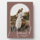 Un recuerdo especial incluye tu foto de boda en un diseño de arco elegante con el texto "Casados" en texto chic junto con tus nombres y fecha de boda en un fondo rosa taupe. Hermoso regalo para tu familia y un recuerdo fabuloso para mostrar en tu propia casa. El color del FONDO se puede cambiar. ¡MÁS COLORES en nuestra colección!