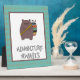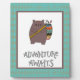 El arte digital adorable presenta a Boho Bear con su colorido quiver de flechas, el texto "Adventure Awaits" y el afligido arlequín verde azulado de fondo