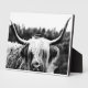 Placa Expositora Boho de raza blanca y negra de vaca escocesa