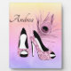 Este diseño femenino es perfecto para los fiestas Sweet 16 o Quinceañera o para cualquier evento de celebración de los modas. Bombas de purpurina rosa brillante con pluma de pavo real rosa y fondo sombrío. Personaliza con el nombre u otro mensaje especial.
