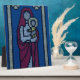 María virgen bordada cruzada con Jesucristo en sus brazos. Fotografía.