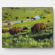 Plaque mostrado con una foto impresa de un hermoso valle con un rebaño de búfalos en el Parque Nacional Yellowstone. Personalizar este artículo o compra tal cual. Imagen de stock