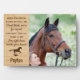 Celebre a su mejor amigo con una placa conmemorativa personalizada de caballo de mascota en un diseño de madera natural. Esta placa de foto de caballo única es el regalo perfecto para usted, familiares o amigos para honrar a los seres queridos.