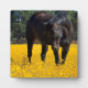 Placa Expositora Caballo de Bahía en un campo de flores amarillas