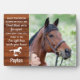Celebre a su mejor amigo con una placa conmemorativa personalizada de caballo de compañía con un diseño de madera rústica. Esta placa única con foto de caballo es el regalo perfecto para usted, su familia o amigos para honrar a aquellos que se aman.
