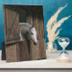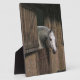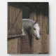 Placa Expositora Caballo gris en la puerta estable