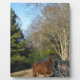 Placa Expositora Caballo marrón contra una cerca