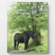 Un hermoso caballo negro descansando a la sombra de un árbol. Acuarela. Gales Reino Unido.