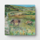 Pintura de acuarela, capturando una escena de prado de verano, con dos caballos y campos flotantes.