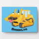 Placa Expositora Caricatura graciosa amarilla con bulldozer