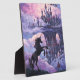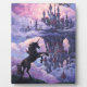 Impresiones de arte, posters, accesorios y regalos del castillo de Unicorn presentan una pintura original de Traci Van Wagoner de un unicornio negro criado en una colina de hierba que domina un castillo blanco alto en el cielo rodeado de coloridas nubes rosa y morada. Este hermoso y caprichoso castillo en las nubes fantasía arte es perfecto para los amantes de la fantasía, los amantes del castillo, los amantes del unicornio, los amantes de la magia y todos los que aman este fantástico.