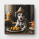 Plata de Acción de Gracias Gorra de la Cena de Peregrinos con Marioneta de Marioneta - una encantadora y encantadora pieza decorativa que capta el espíritu del Día de Acción de Gracias con un delicioso giro. Esta placa muestra un adorable ilustracion de un lindo cachorro de Whippet con un gorra de peregrino, esperando ansiosamente una cena festiva de Acción de Gracias. Le aporta un toque de cortesía y alegría navideña a su decoración.