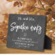The Signature Drinks Chalkboard Wedding Sign Tabletop Plaque features a stylish imitation chalkboard design, perfect for adding a rustic, yet elegant touch to your wedding reception. The plaque showcases a list of your signature drinks in beautiful, handwritten-style fonts, evoking the charm of a real chalkboard without the mess. The black background mimics chalkboard texture, while white and colored "chalk" lettering makes the drinks menu pop.
