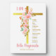 Esta placa de bautismo es perfecta para un chica de cualquier edad. Este diseño de bautismo presenta flores rosadas y rojas de bonito en un crucifijo. Hay siete palabras inspiradoras asociadas con sus versos bibliales. Todo el texto se puede personalizar. Puede reemplazar el nombre del chica, las palabras y los versos asociados, y especificar la fecha de bautismo. Esta placa se verá genial en la habitación de una niña, en la habitación de un niño o incluso en una habitación de un adolescente chica. Se verá genial en una mesa o en una estantería. Definitivamente le recordará ese día especial en que fue bautizada. Es un gran regalo para una hija, ahijada, sobrina, nieta, novia, bestie, hermana o hermana de Cristo.