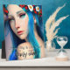 Sueña grande y vive tu cita de cuento de hadas. chica de hadas encantada con pelo azul y flores rojas y blancas en su cabello y ojos azules. Fantasy art ai art. generativecontenent