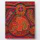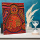 Chica indio de Kuna en bicicleta, negro rojo, amarillo, Virginia Vivier, arte popular de Vagabond, indio de la Cuna, Mola, San Blas Mola, arte folclórico de mola, arte popular de Kuna.