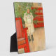 Carl Larsson, artista de acuarela del siglo XIX de Suecia, pintó una niña llamada Greta frente a un árbol de Navidad, un banco rojo y una mecedora roja. Ella está vestida para el invierno con una bufanda y abrigo de piel. Regalos navideños escandinavos. ¡Dios Jul!