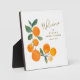 Placa de bienvenida de chimenea de boda rústica de naranjas acuarela